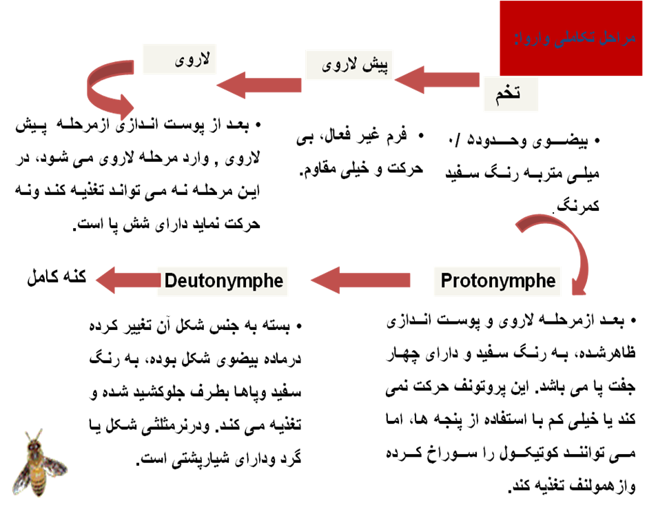 بعد از پوست اندازی از مرحله پیش لاروی, وارد مرحله لاروی میشود، در این مرحله نه میتواند تغذیه کند و نه حرکت نماید دارای شش پا است.
