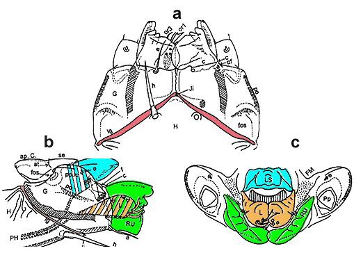 بسته به جنس شکل آن تغییر کرده در ماده بیضوی شکل بوده، به رنگ سفید و پاها بطرف جلو کشید شده و تغذیه می کند. و در نر مثلثی شکل یا گرد و دارای شیار پشتی است.